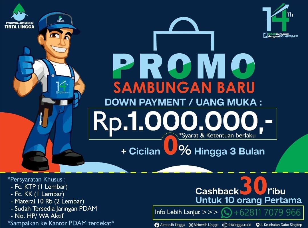 Perumda Air Minum Tirta Lingga memberikan diskon sebesar 30% bagi pelanggan yang terpengaruh oleh gangguan teknis. Kebijakan ini ditujukan untuk pelanggan yang mengalami kesulitan akses air selama lebih dari 5 x 24 jam di wilayah pelayanan Singkep. Rincian Kebijakan Diskon: Diskon 30%: Diberikan